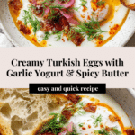 Keywords: Turkish eggs, Cilbir, poached eggs, garlicky yogurt, pickled red onions, paprika butter, breakfast recipe, easy Turkish breakfast
