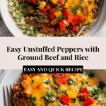Keywords: Unstuffed peppers, ground beef recipe, easy skillet meal, stuffed peppers without stuffing, hearty dinner, quick dinner recipe