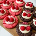 - Fill and Decorate Cookies: Spoon or pipe the ganache into the wells of the cooled cookies. Decorate the tops as desired with freeze-dried raspberries, chocolate squares, heart sprinkles, or drizzle with melted white chocolate for an elegant finish.