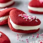 Keywords: Red Velvet Whoopie Pies, Valentine’s Day Dessert, Heart-shaped Cookies, Cream Cheese Filling, Red Velvet Cookies, Homemade Whoopie Pies, Festive Desserts
