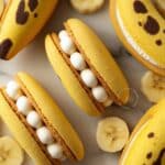 - Assemble the sandwiches: Fit a piping bag with a medium round tip and fill with the banana buttercream. Pipe cream onto half of the cooled cookies. Add banana slices on top of the cream, then sandwich with another cookie.