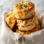 These Vegan Cheddar Biscuits are fluffy, buttery, and packed with flavorful vegan cheddar cheese. Made without dairy, they use a plant-based buttermilk and vegan butter to create a tender biscuit perfect for breakfast or as a savory side. Brushed with a garlic parsley butter topping, these biscuits are sure to satisfy any cheese lover with a vegan twist.