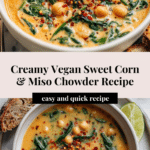This vegan sweet corn and miso chowder is a creamy, comforting dish perfect for any season. Packed with tender potatoes, sweet corn, and a savory miso twist, it’s a delightful meal that’s both hearty and nourishing.
