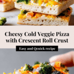 This cold Veggie Pizza features a buttery crescent roll crust topped with a creamy ranch spread, sharp cheddar cheese, and a colorful mix of fresh vegetables. It’s a vibrant, easy-to-make appetizer or snack perfect for gatherings or a light meal.