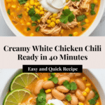 White Chicken Chili is a comforting twist on traditional chili, featuring tender chicken, creamy white beans, and a touch of spice. This hearty dish is perfect for cozy dinners or casual gatherings. Ready in just 40 minutes, it’s easy to make and sure to please your family and friends.