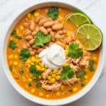 This comforting White Chicken Chili combines tender cooked chicken with creamy white beans, corn, and a blend of spices for a flavorful twist on traditional chili. Enhanced with green chilies and finished with a touch of cream, it makes for a hearty and satisfying meal perfect for any day of the week.